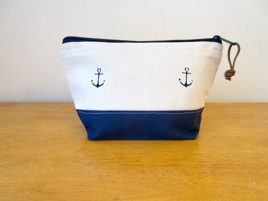 Canvas Clutch Bag Navy contrast 8 1/2 x 5 1/2