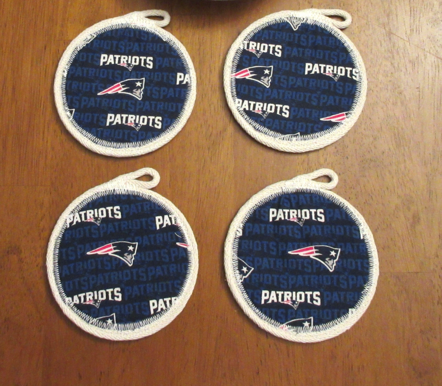 New England Patriots hand sewn rope coasters.  Set of 4.